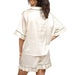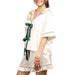 Elevate your sleepwear collection with this refined satin pajama set, featuring delicate green bow accents that add a touch of elegance to your nighttime routine. The short-sleeve, short-length silhouette offers comfort and ease, while contrasting trim details enhance the sophisticated design. A snap front closure and adjustable elastic waistband with drawstring ensure a perfect fit every time. Crafted from a luxurious blend of 95% polyester and 5% spandex, this cream-colored set delivers a silky-smooth feel against your skin with just the right amount of stretch for all-night comfort.