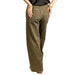 A straight wide leg denim pant with a darker faded olive coloring. Has a slightly frayed hem at the bottom. Made out of 98% cotton and 2% spandex. Fit true to size and have a little stretch!