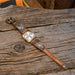 This 1960's Longines Admiral Gold-fill Watch is a premier example of vintage watchmaking paired with custom Western craftsmanship. The watch face is elegantly complemented by a Sunset Trails 5-piece watch band set, featuring sterling silver and 10K two-tone gold. Rebuilt in 2013, this timepiece comes with accompanying paperwork to verify its service history and quality.
