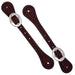 Expertly crafted Teskey's Youth Basket Stamped Straight Spur Straps. Made with stainless steel hardware and measuring 7" on the middle hole, these straps come in 2 colors, light and heavy oil, with 5 size adjustments for a perfect fit.