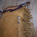 Our Teskeys Quality roughout shotgun chaps are with lacing, rope tooled yoke, two silver conchos, gunslinger belt, and a deep pocket for convenience. Great for Showing, Ranching, Cutting, Ranch Sorting, deer hunting, cowboy downhill skiing, with a good medium weight.