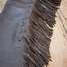 Our Teskeys Quality Roughout leather shotgun chaps feature Chocolate leather accents, a basketweave tooled double yoke, one silver conchos, gunslinger belt, tie-ring and two deep pocket for convenience. Great for Show or Ranching.