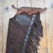 Our Teskeys quality roughout dark chocolate leather shotgun chaps are accented, three silver conchos, a single deep pocket for convenience. Great for Show or Ranching.