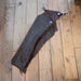 Our Teskeys quality smooth leather shotgun chaps are made from chocolate leather with a basketweave tooled double yoke, one silver concho, tie-ring and a single deep pocket for convenience. Great for Show or Ranching.