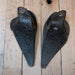 Crafted from black leather, these vintage-style tapaderos showcase intricate tooling that adds both elegance and durability. Are from the early 1940's a great pair to add to your west collection or for decor