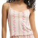 Sweet, flirty, and effortlessly comfortable, the Vanity top is made for lounging in style. Crafted from a soft, lightweight stretch fabric, it features a delicate pink floral stripe print with a feminine ruched center detail that flatters the neckline. Adjustable spaghetti straps allow for a customizable fit, while the gently scalloped hem adds a romantic, vintage-inspired finish.