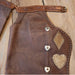 These vintage batwing chaps represent genuine Western heritage, handcrafted by R.T. Frazier, the visionary Colorado saddle maker whose Pueblo workshop became one of America's largest stock saddle producers by the early 1900s. The eye-catching card suits design paired with the heart shaped conchos set these chaps apart, showcasing the decorative flair Frazier was known for in his mail-order catalog offerings. Built to withstand ranch work while turning heads, these chaps embody the quality and character that made Frazier's name legendary among working cowboys and collectors alike. A remarkable artifact from the golden age of American Western craftsmanship.