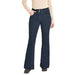 The Rock & Roll Cowgirl Women's Dark Wash Welt Pocket Trouser Jeans deliver a sleek mix of modern design and Western edge. Styled with a dark denim base and welt-pocket construction, these trousers offer a polished look that pairs perfectly with boots or heels. Built with a high-rise waist, wide-leg cut, and contrast stitching, they bring both comfort and refined style to your denim rotation.