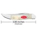 Handcrafted in the U.S.A., this classic American Case Toothpick is about 3 inches long (folded/closed) and weighs approximately 0.9 ounces. The handle is smooth Natural Bone with a Red Oval Script Inlay shield. The bolsters are Highly polished Nickel Silver. This knife utilizes a 2 1/4" Long Clip blade. Stamped with pattern number 610096 SS, the blade material is Tru-Sharp Surgical Stainless Steel with a mirror-polished finish and engraved with Case XX '1st Run' logo. The knife is presented with a Case XX 'First Production Run' Box. This Toothpick is a professional-grade tool that comes with a Limited Lifetime Manufacturer's Warranty and is not designed nor intended to be used on or against humans. So, whether you're hunting for authentic cutlery to collect, a top quality knife to give as a gift, or a superior tool to use, don't pass this one up!