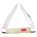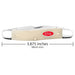 Handcrafted in the U.S.A., this classic American Case Muskrat is about 3 7/8 inches long (folded/closed) and weighs approximately 2.5 ounces. The handle is smooth Natural Bone with a Red Oval Script Inlay shield. The bolsters are Highly polished Nickel Silver. This knife utilizes two 3" Clip point blades. Stamped with pattern number MUSKRAT SS, the blade material is Tru-Sharp Surgical Stainless Steel with a mirror-polished finish. This Muskrat is a professional-grade tool that comes with a Limited Lifetime Manufacturer's Warranty and is not designed nor intended to be used on or against humans. So, whether you're hunting for authentic cutlery to collect, a top quality knife to give as a gift, or a superior tool to use, don't pass this one up!