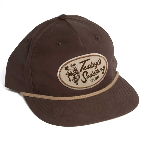Teskey'sStyle # 256-DKMCKH-A Color: Dark Mocha/Khaki Rope Accent Flat Bill Teskey's Saddlery Patch Snap Back UPF 50+