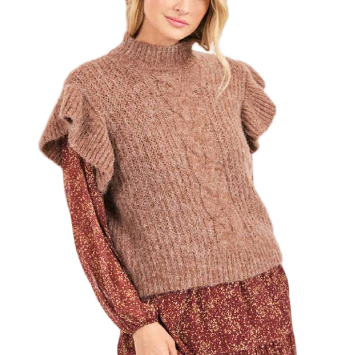 Sadie & SageStyle # AH4425 Featuring delicate ruffle accents at the shoulders and a textured cable knit, this piece blends soft sophistication with everyday we...