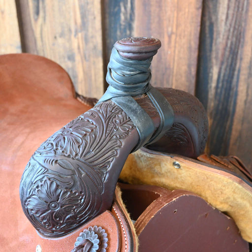 SHOPMADEThis used 14" Team Roping saddle comes in a heavy oil floral tooling with a hard seat. For more information call a saddle salesman today at 888-9...