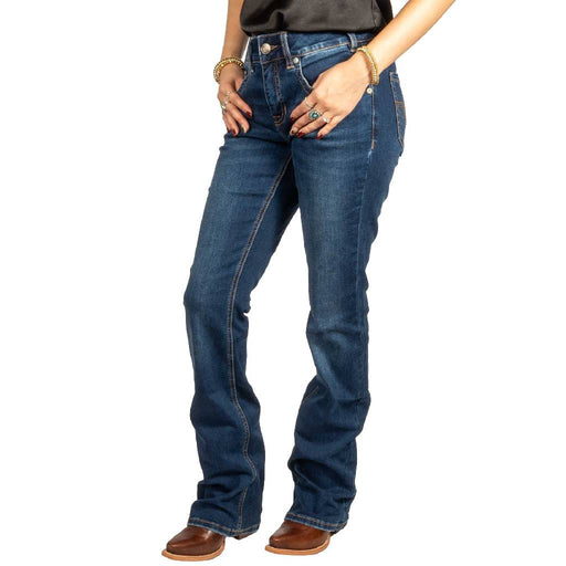 PanhandleStyle # BW5HD07844 The Rock & Roll Cowgirl Women's Dark Wash Welt Pocket Trouser Jeans deliver a sleek mix of modern design and Western edge. S...