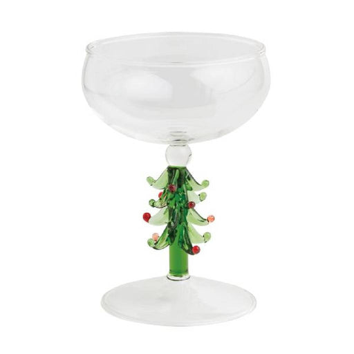 Mud PieStyle # 44600129G Elevate your holiday celebrations with our exquisite Christmas Tree Coupe Glass. This elegant coupe-style glass features a beauti...