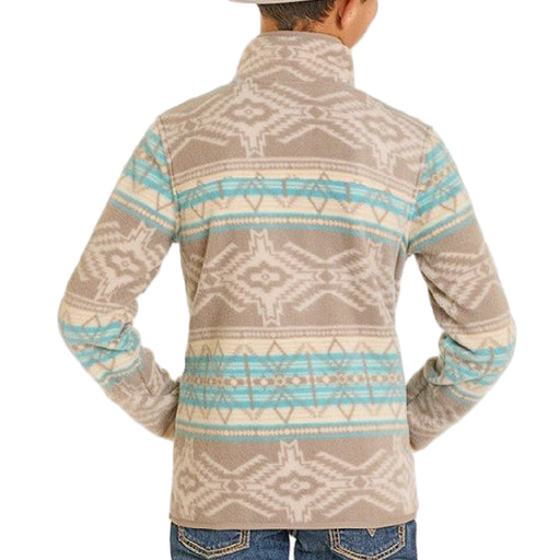 PanhandleStyle # BB91T07720 Elevate your boy's wardrobe with this Rock & Roll Denim fleece pullover, featuring an elegant taupe Aztec print that blends ...