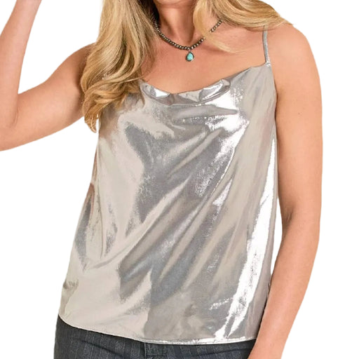 PanhandleStyle # BW20T07810 This tank top is perfect for adding a touch of shine to your outfit with its silver metallic color. Its sleeveless design and ad...