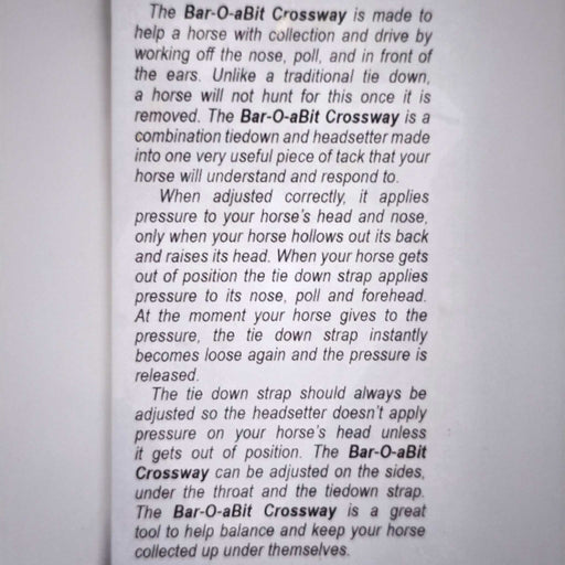 BAR-O-ABITTHE "CROSSWAY" COLOR: Blue with Snaps The Bar-O-A Bit Crossway is made to help a horse with collection and drive by working off of the nose, poll, ...