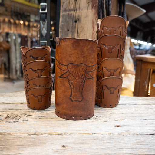 View full detailsLeather Glass Cover Set with Carved Longhorn Steer