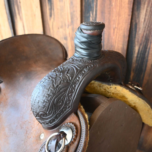 Circle Y SaddleryThis used 15.5" Circle Y Trail saddle comes in a heavy oil floral tooling with a padded seat. For more information call a saddle salesman today at ...