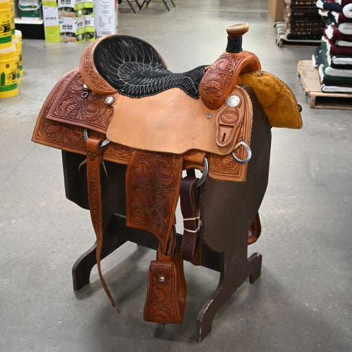 Burns SaddleryThis used 13" Burns Barrel saddle comes in a heavy oil floral tooling with a padded inaly seat. For more information call a saddle salesman today a...