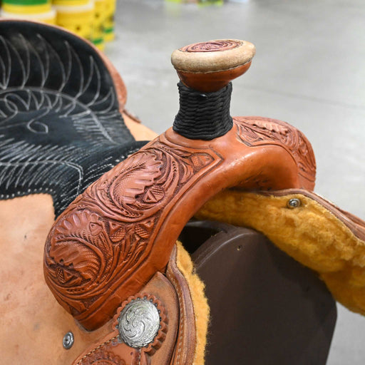 Billy CookThis used 15.5" Billy Cook Reining saddle comes in a heavy oil floral tooling with a padded seat. For more information call a saddle salesman today...