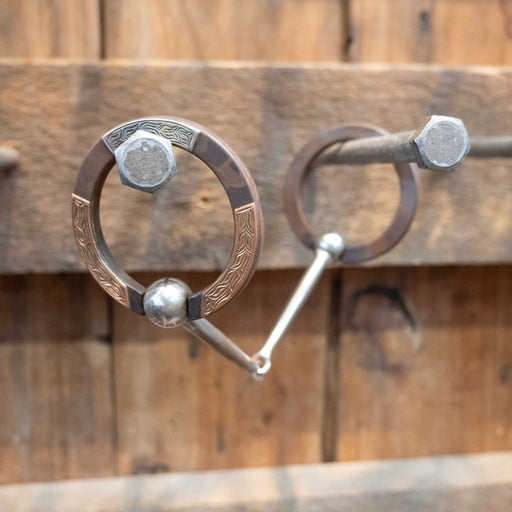 Jesse HooverMaker: Jesse Hoover Mouthpiece: Smooth Snaffle Cheek: Copper & Silver Mounted Locked O-Ring