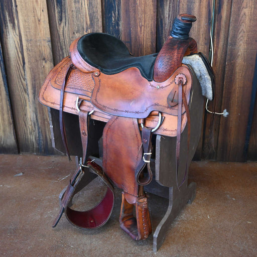 SHOPMADEThis used 15" Barrel saddle comes in a heavy oil basket and floral tooling with a padded seat. For more information call a saddle salesman today at...