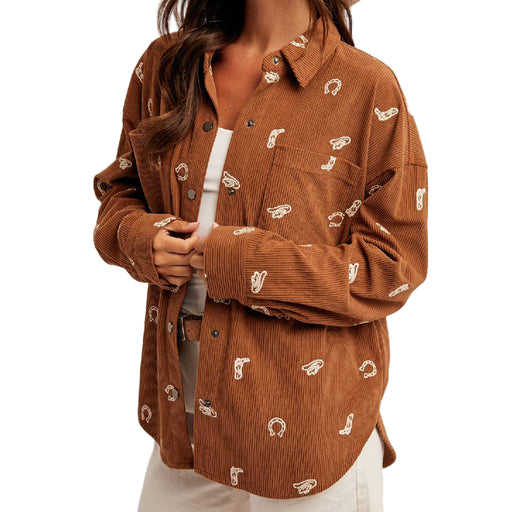 View full detailsCowgirl Embroidered Mocha Corduroy Top