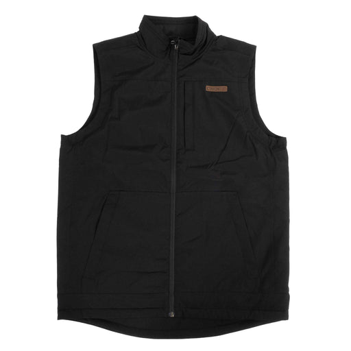 CinchStyle # MWV1927001 This black men's vest is constructed from durable poly canvas and features a single chest pocket along with convenient hip pocke...
