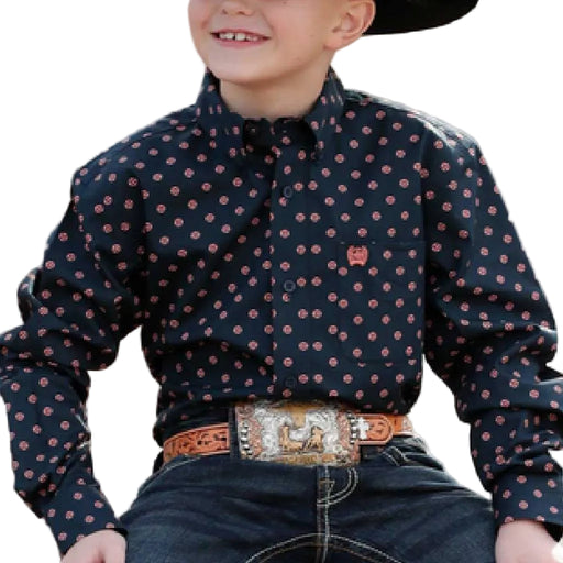 PanhandleStyle # BB51T07691 This refined boy's polo combines classic western aesthetics with modern performance technology. Featuring a striking conversatio...