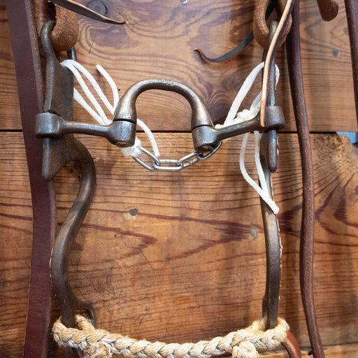 MISCMaker: Stamped "SP" Headstall: Leather Split Ear Reins: Leather Rope Reins Mouthpiece: Ported Chain Cheek: 8 3/4" Measurements are Approximate