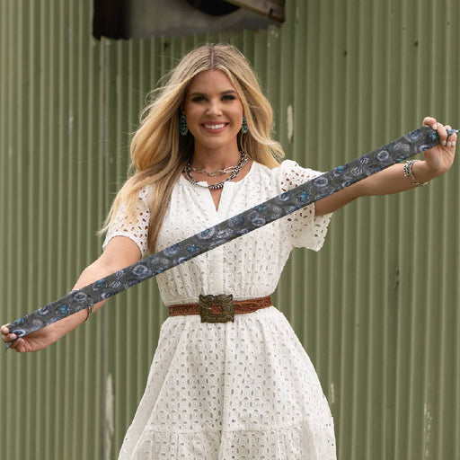 Fringe ScarvesStyle # SCRF-QNRD-LT-25005 Designed by Amy Moorhouse for Fringe Scarves, Queen of the Rodeo is a vibrant tribute to Western glamour. Featuring a st...