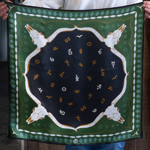 Fringe ScarvesStyle # SCRF-HKD-GRN-SH-25026 Hooked is a tribute to the marks we leave behind. Branded with a collage of classic cattle brands and framed by longh...