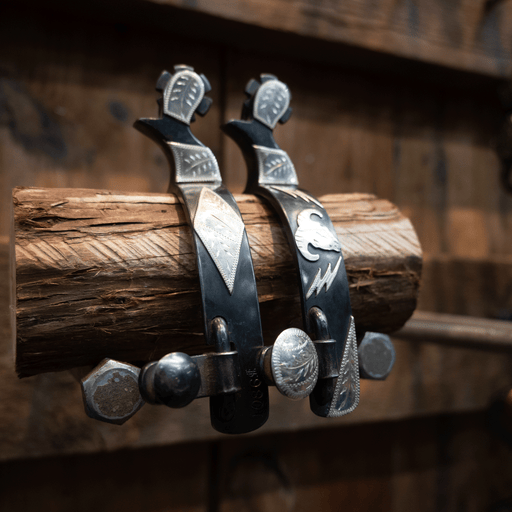 Bob BlackwoodMaker: Bob Blackwood Heel: 3 3/4" Band: 1" Shank: 2" Rowel: 9pt. Measurements are Approximate