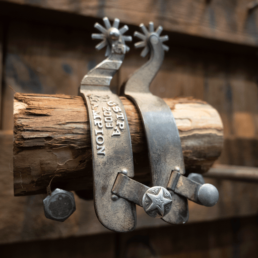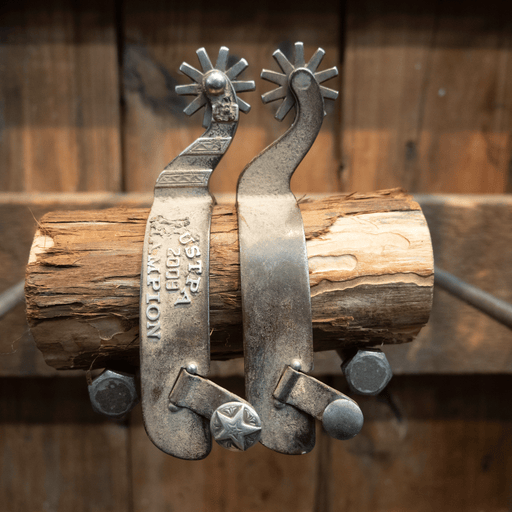 Tom BaldingMaker: Tom Balding Heel: 3 3/4" Band: 1" Shank: 2" Rowel: 10pt. Measurements are Approximate
