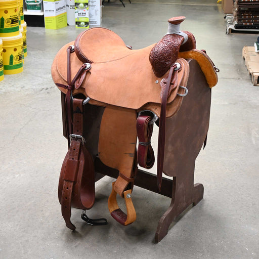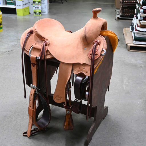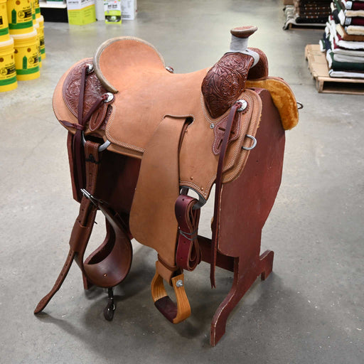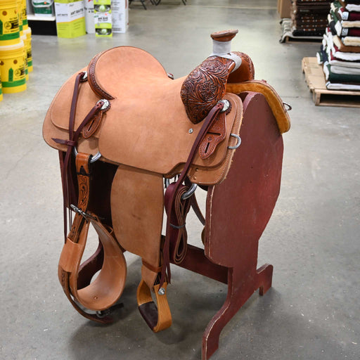 Teskey's SaddleryThis new 15" Teskey's Ranch saddle comes in a light oil 1/2 poinsettia tooling with a hard seat. For more information call a saddle salesman today ...