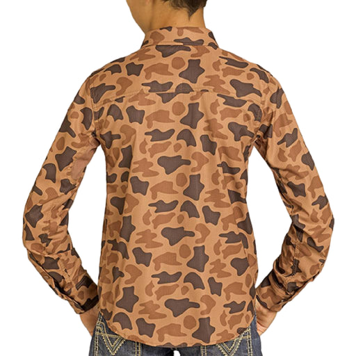 PanhandleStyle # BBN2S07674 This Rock & Roll Denim boy's shirt combines practical design with everyday comfort. The camel-colored long sleeves feature s...