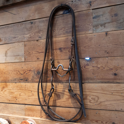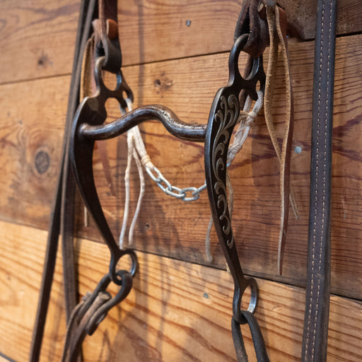 J VaughanMaker: J Vaughan Bit Headstall: Craig Lewis Split Ear Headstall Reins: Leather Split Reins Mouthpiece: Port Curb: Chain