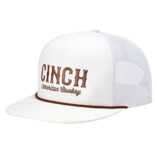 CinchStyle # MCC0600611 Color: White Rope Accent Brown Cinch Embroidery Flat Bill Snapback Mech Back