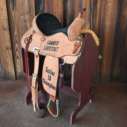 Shiloh SaddleryThis used 13" Shiloh Barrel saddle comes in a heavy oil geometric and trophy tooling with a padded seat. For more information call a saddle salesma...