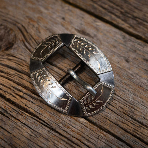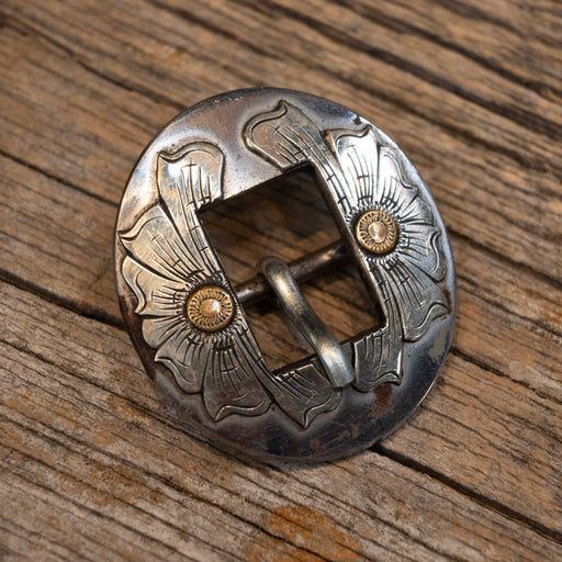 Wayne DollarWayne Dollar mounted headstall buckle 5/8” buckle Length: 2" Width: 1 3/4" Measurements are approximate