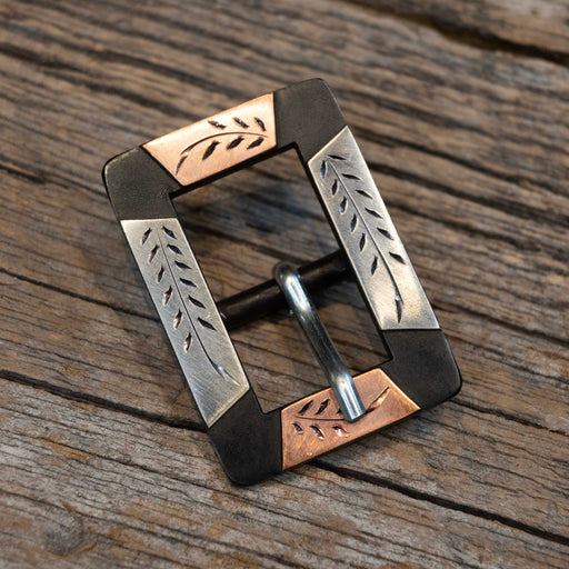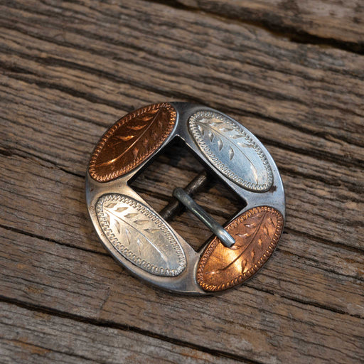 Wayne DollarWayne Dollar silver & Copper mounted headstall buckle 3/4” buckle Length: 2 1/2" Width: 2" Measurements are approximate