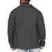 This black jacket features long sleeves and a snap closure for easy wear. It includes two chest pockets and hip pockets, providing practical storage. Crafted from a blend of 50% cotton and 50% polyester, it balances comfort and durability.
