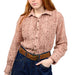 Featuring a pink floral print, this tuxedo-style top showcases a button-front design with pintuck and ruffle accents. It has long sleeves and is crafted from 100% cotton for comfort and breathability.