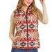This reversible vest features a vibrant Red Aztec print and includes a zippered front for easy wear. It has convenient side pockets secured with snap closures. Made entirely from polyester, it offers both style and comfort.
