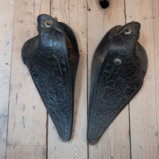 MISCCrafted from black leather, these vintage-style tapaderos showcase intricate tooling that adds both elegance and durability. Are from the early 194...