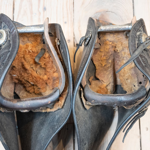 View full detailsVintage Leather Tapaderos with Wooden Stirrups