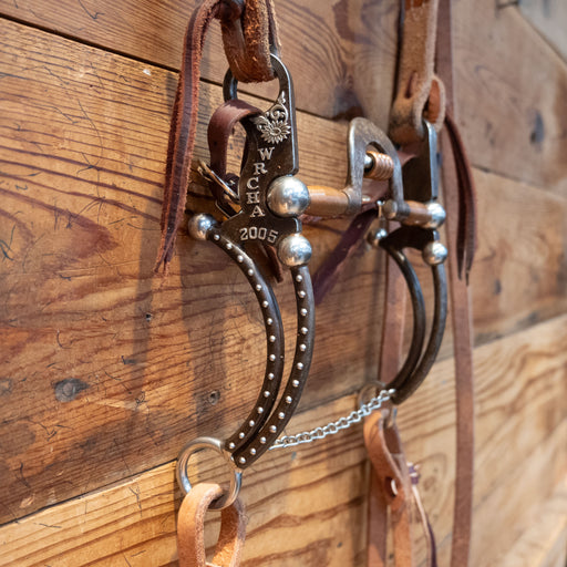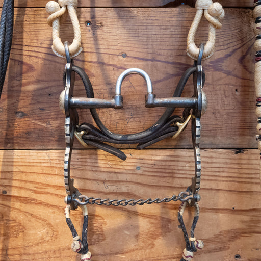 Kerry KelleyMaker: Kerry Kelley Headstall: Leather Single Ear Reins: Leather Rope Reins Mouthpiece: Twisted Wire Hinge Port Shank: 7" Curb: Chain with Leathe...