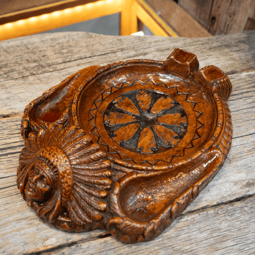VintageLate 1940's Syroco wood Indian Chief ashtray with two bear paw, pipe holders & ashtray with arrow heads ...